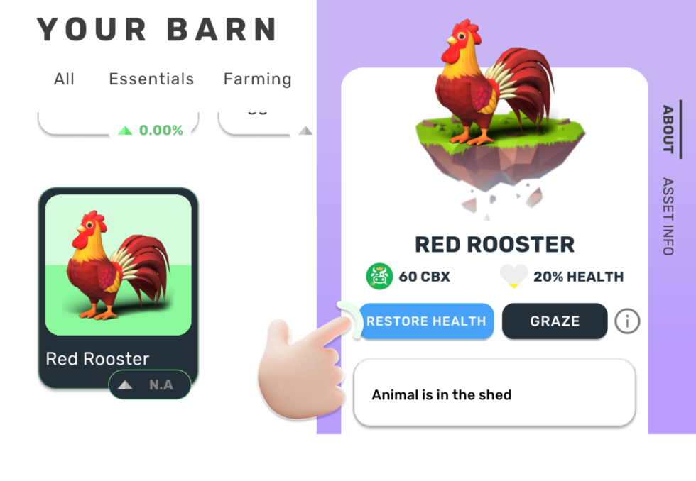 Farmers can now improve the health of their beloved animals in a giffy. This new feature allows an instant health boost to 80% by burning some amount of CBX. This helps both the economy and also improves the supply of Animal Extracts.
