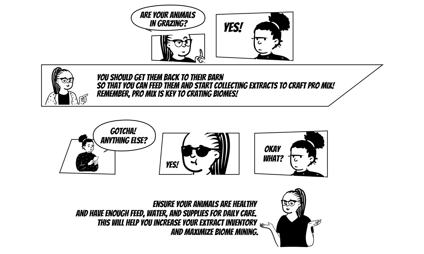 Meet Elena, she is an expert Farmer and you’ll see more of her in our Comic series. This time she came across another player named, Sophia. Sophia is a hard-working player but she might not know what to do with so much information about Biome mining, and the new Conquest game. So Elena our expert took it upon herself to answer some of her questions, let’s have a look: