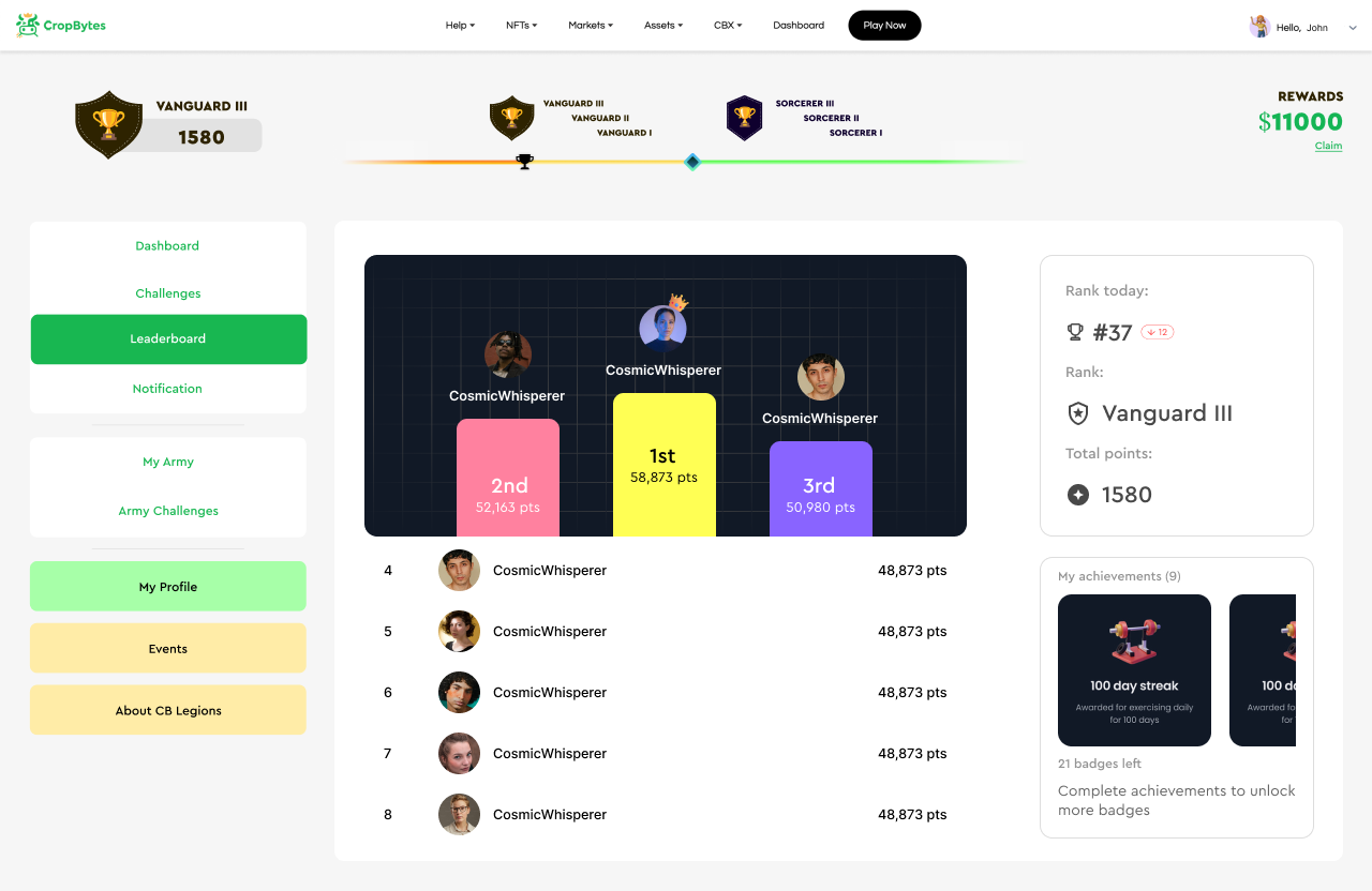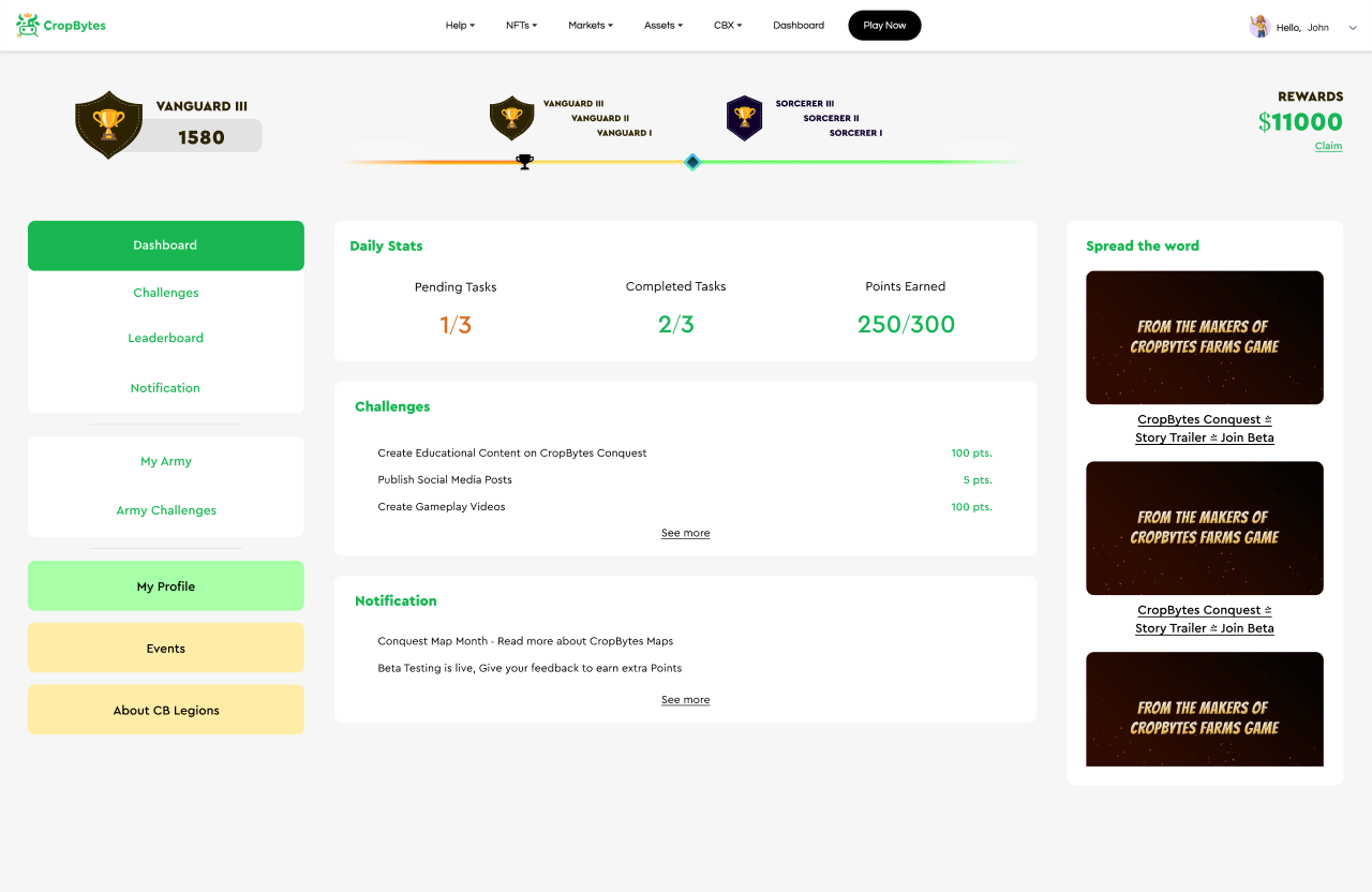 Climb the Ranks: Accumulated points propel you through the ranks of the CropBytes Legions. Each rank comes with its own set of perks, recognition, and rewards, making every challenge a step towards greater glory.