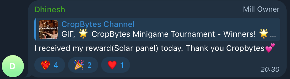 2️⃣Congratulations to Dinesh for winning the Minigames Tournament and earning a Solar Panel!
