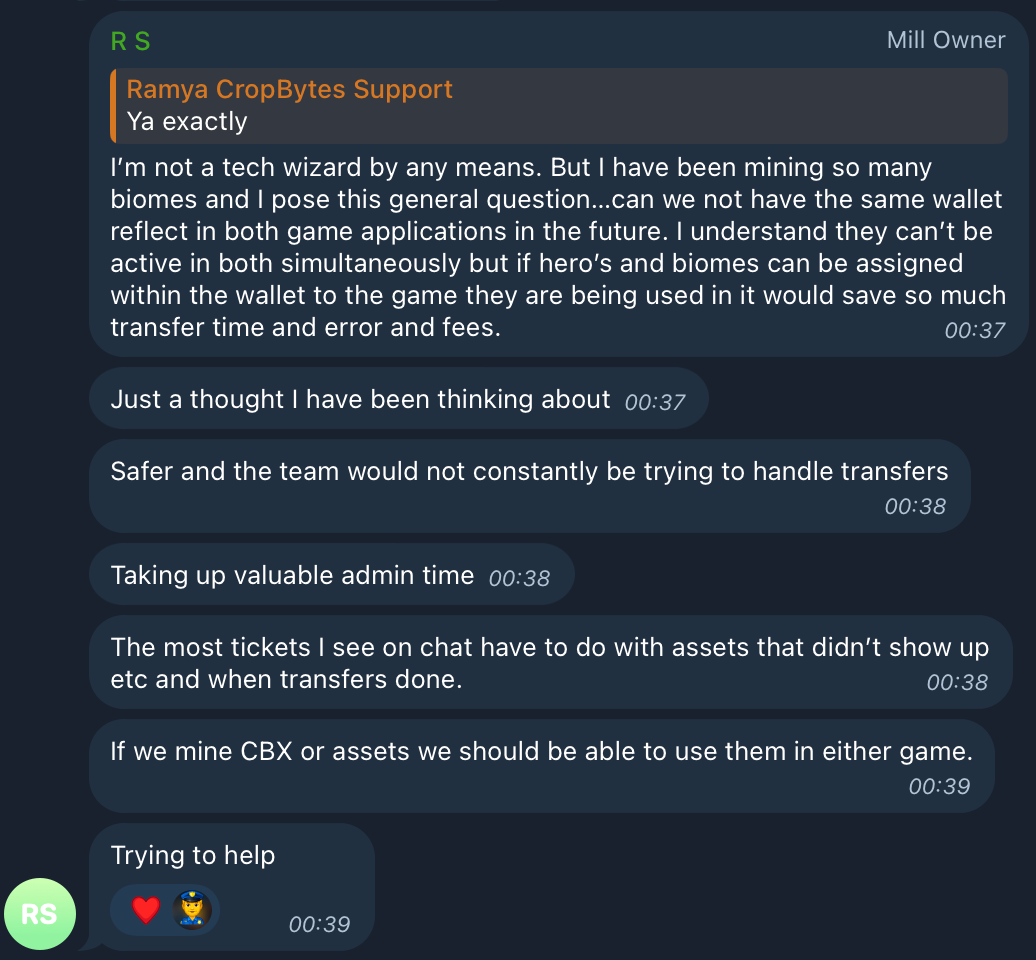 High five, RS! 🖐️ That suggestion is pure gold. But due to CB Farms being Web2.5 and Conquest coming with Web3 tech, it may not be possible to build a direct bridge between the two games. But we will try our best to make the experience as smooth as possible.